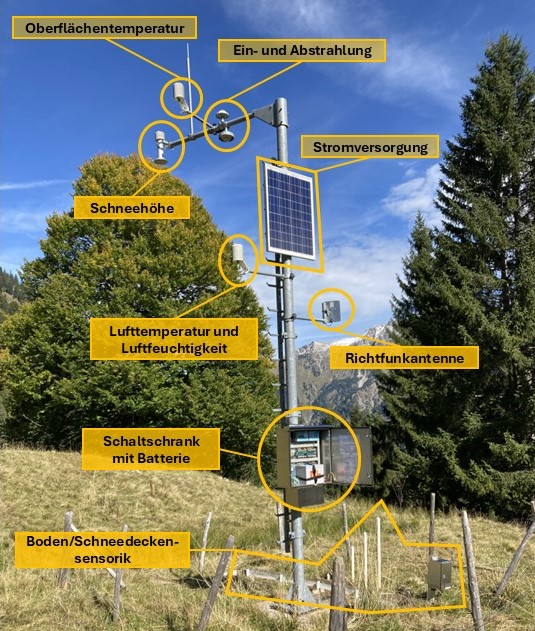 Der Lawinenwarndienst Bayern betreibt ein modernes Netz von Messstationen in den bayerischen Alpen. Dort werden laufend Wetter- und Schneedaten wie Temperatur, Wind und Schneehöhe gemessen. Diese Informationen sind nicht nur wichtig für die Erstellung des täglichen Lawinenlageberichts, sondern auch für Wintersportler. So kann zum Beispiel ganz einfach nachgeschaut werden, ob genug Schnee für Ski-, Splitboard- oder Schneeschuhtouren liegt.