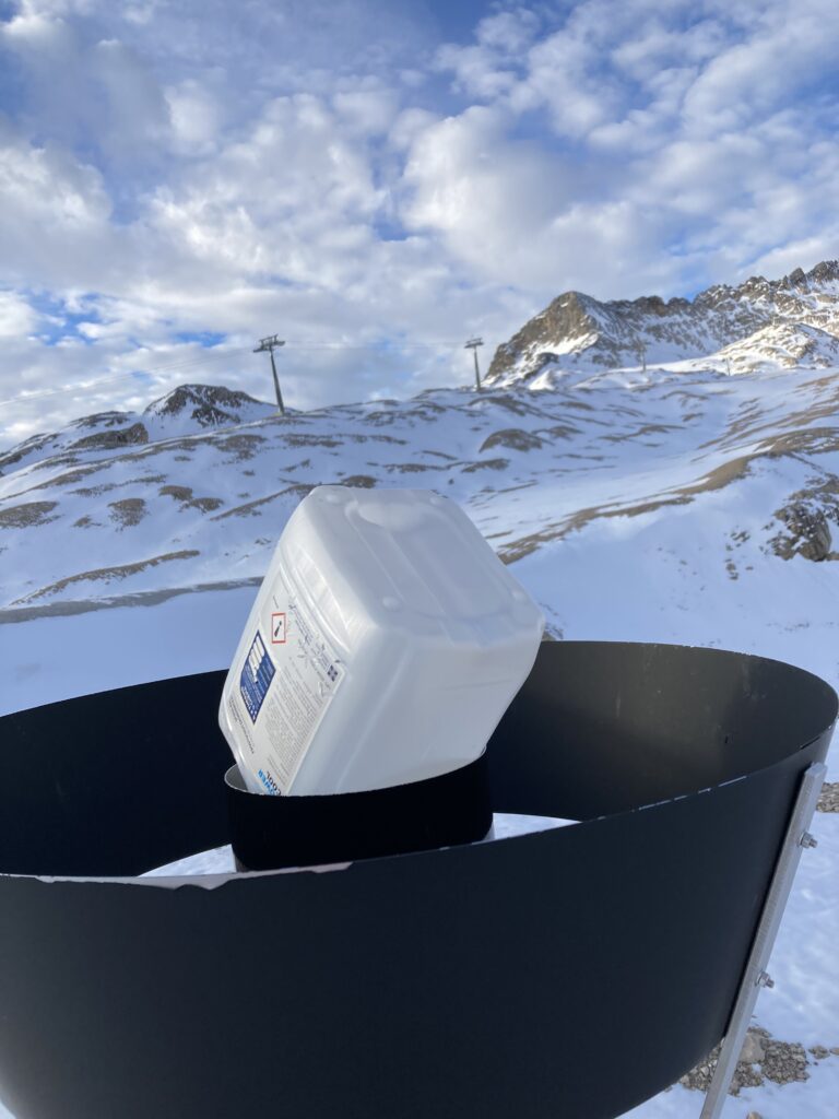 Neuer Frostschutz muss in die Niederschlagstöpfe gefüllt werden, damit Regen und Schnee gleichermaßen als Wasser gemessen werden können. Im Niederschlagstopf schmilzt der Schnee, so dass der Niederschlag ob Regen oder Schnee vergleichbar erfasst wird. Wenn der Niederschlagstopf gefriert, ist eine genaue Messung der Niederschlagsmenge nicht mehr möglich.